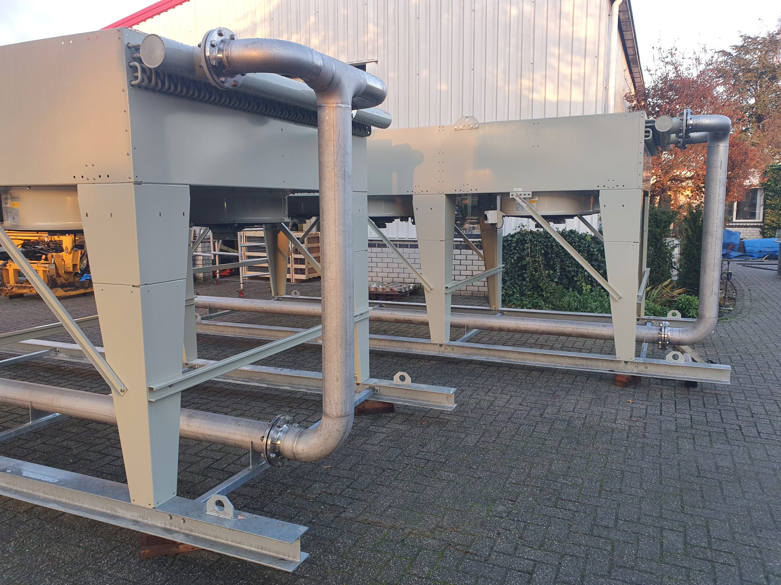 Koelinstallatie pijpwerk compleet met balgen, slangklemmen en waar nodig compensatoren. Wij  rekenen meteen het waterzijdig drukverlies na.