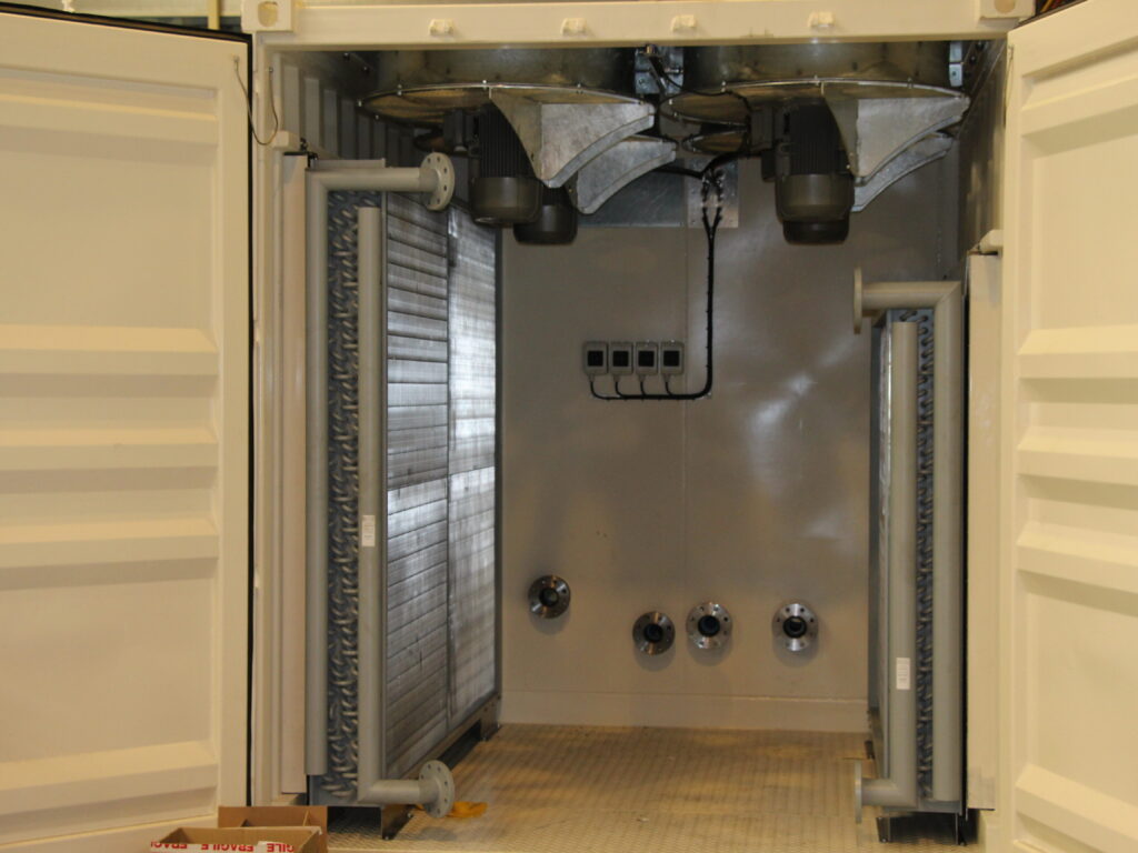 Het is passen en meten om de noodstroomsets in een container te plaatsen.